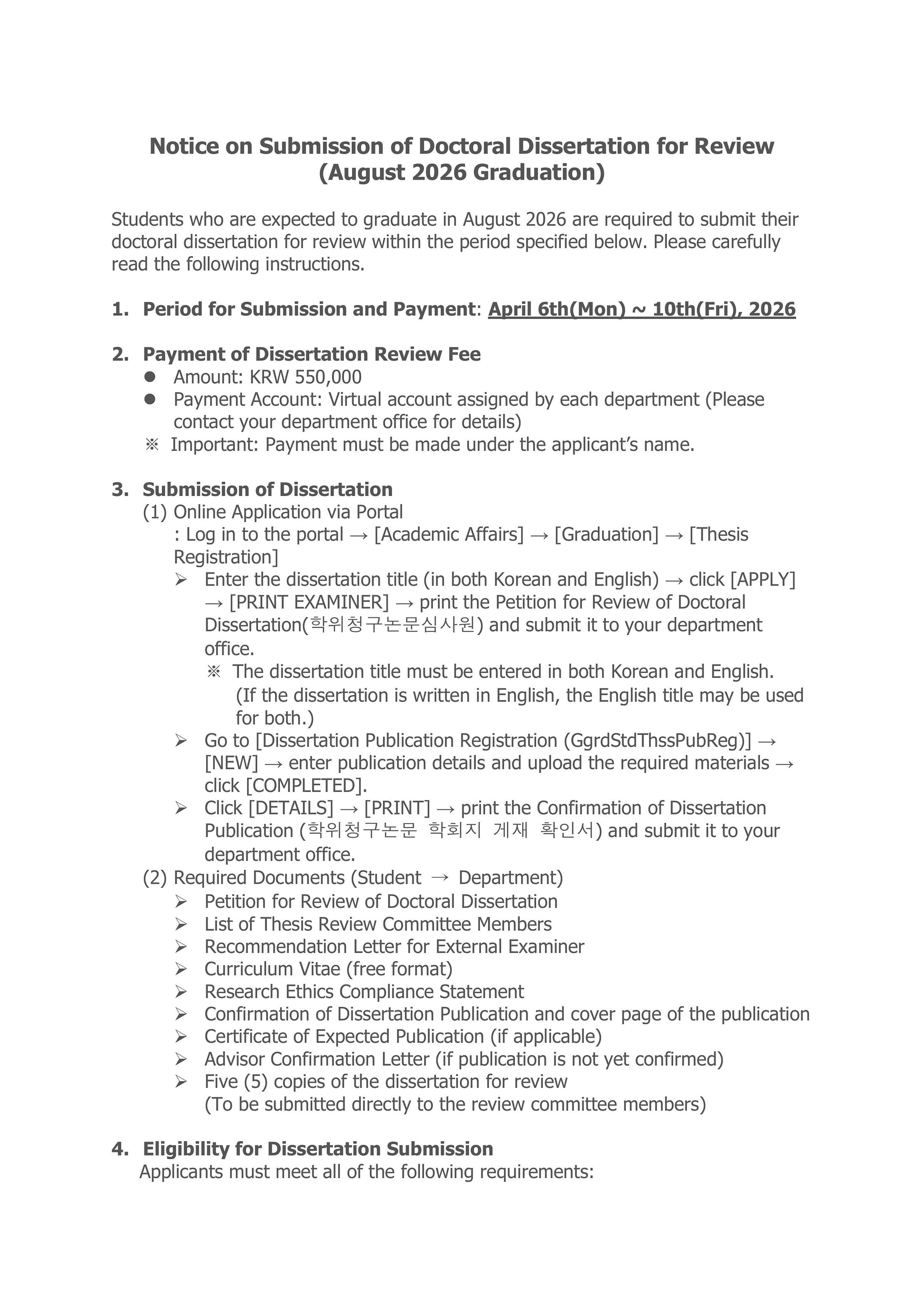 [Notice] Notice on Submission of Doctoral Dissertation for Review (August 2026 Graduation)